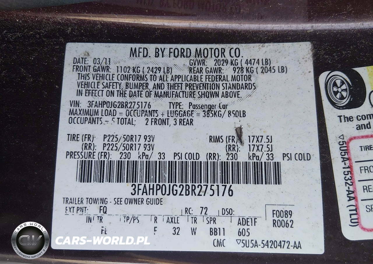 IAAI Nr: I-44897555 VIN: 3FAHP0JG2BR275176 Port: Savannah, GA
