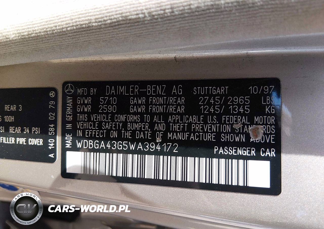 IAAI Nr: I-44898527 VIN: WDBGA43G5WA394172 Port: Elizabeth, NJ