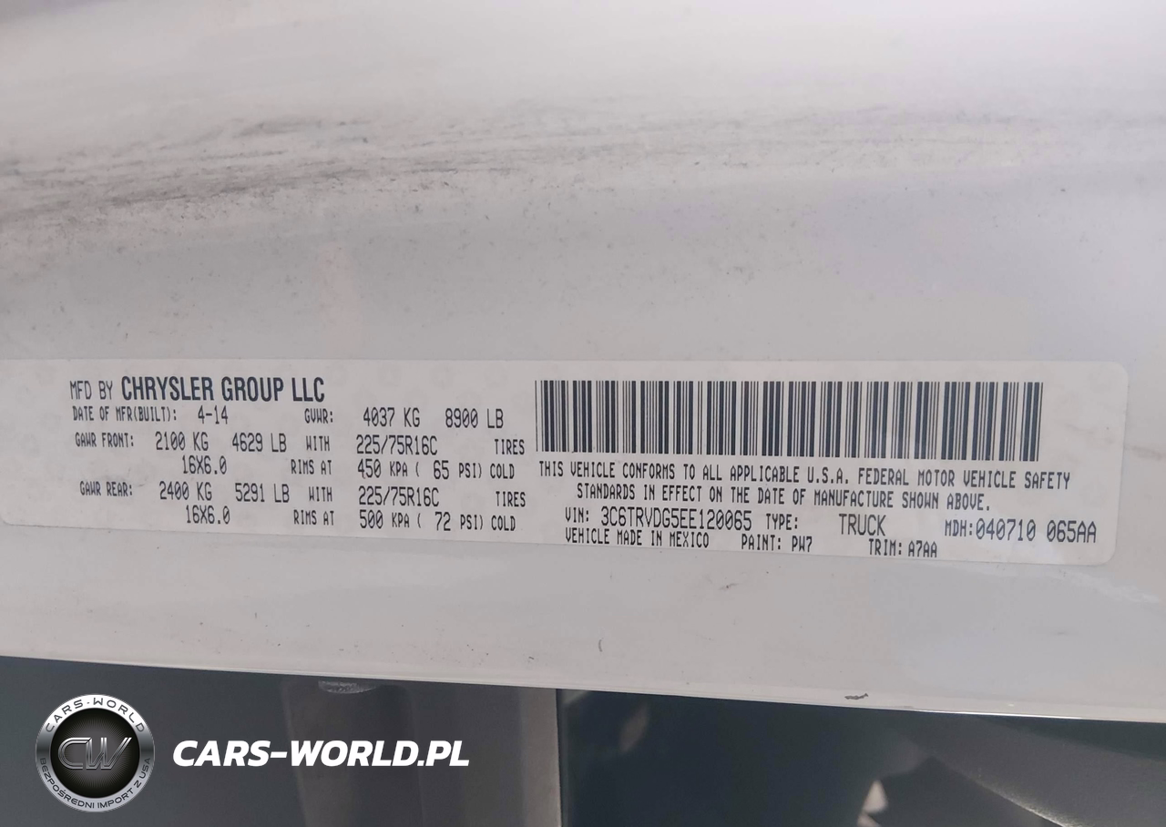 IAAI Nr: I-44899601 VIN: 3C6TRVDG5EE120065 Port: Savannah, GA