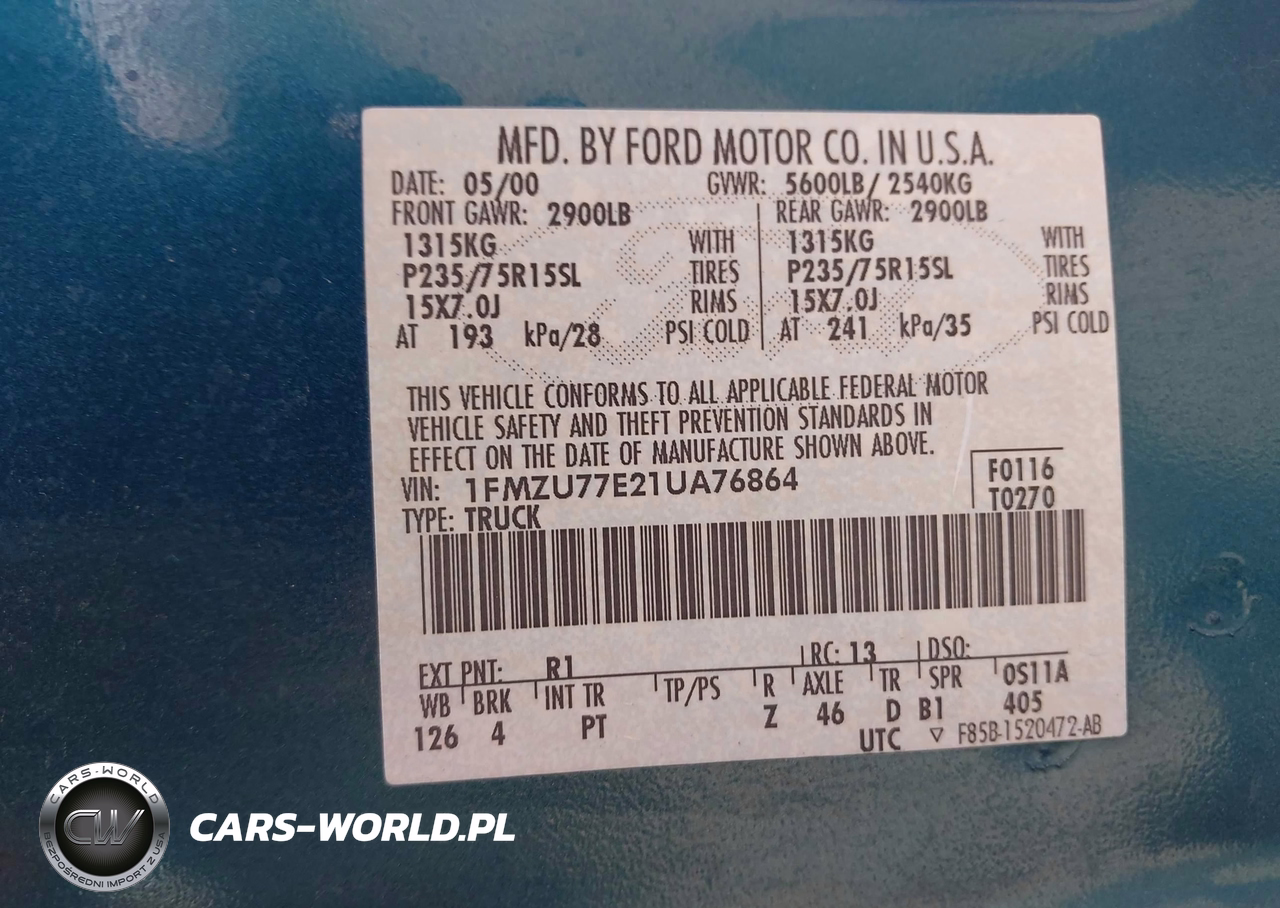 IAAI Nr: I-44899864 VIN: 1FMZU77E21UA76864 Port: Elizabeth, NJ