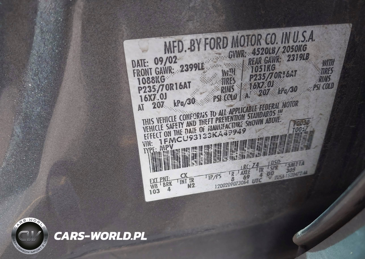 IAAI Nr: I-44900679 VIN: 1FMCU93133KA49949 Port: Los Angeles, CA
