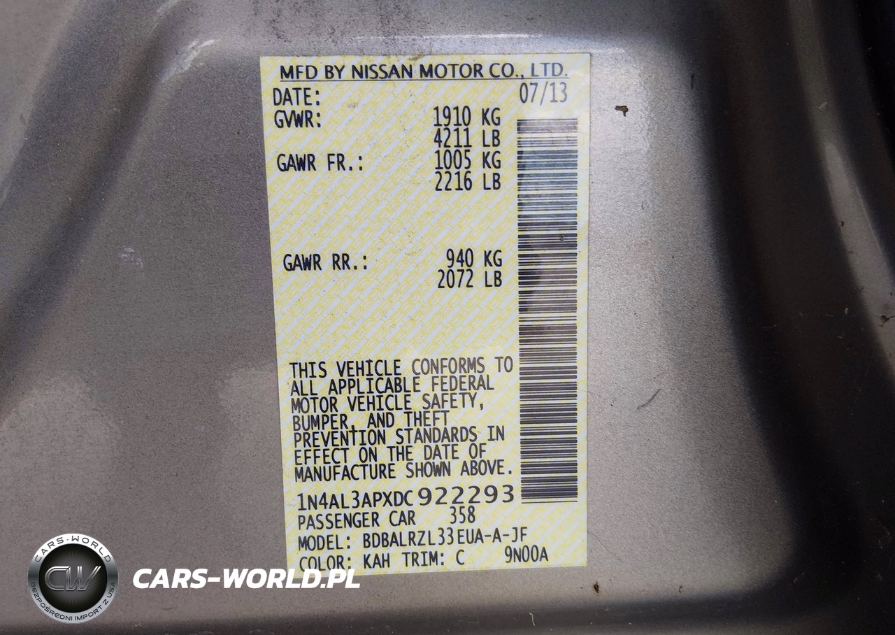 IAAI Nr: I-44900780 VIN: 1N4AL3APXDC922293 Port: Savannah, GA