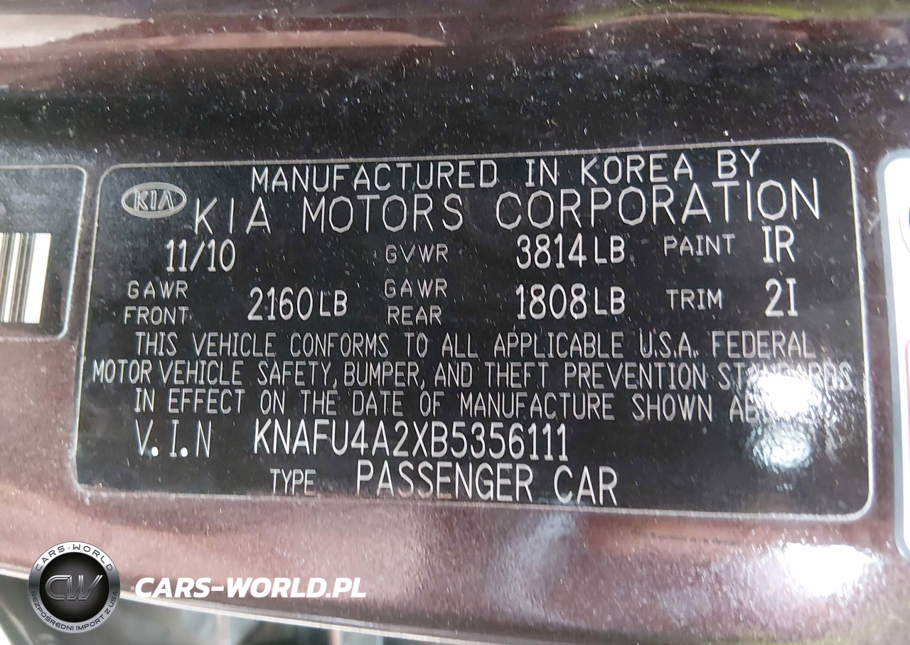 IAAI Nr: I-44901556 VIN: KNAFU4A2XB5356111 Port: Elizabeth, NJ