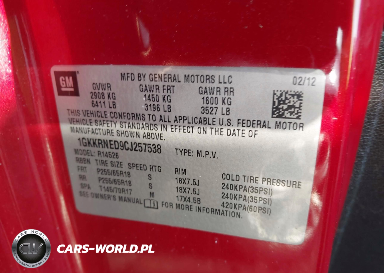 IAAI Nr: I-44902327 VIN: 1GKKRNED9CJ257538 Port: Savannah, GA