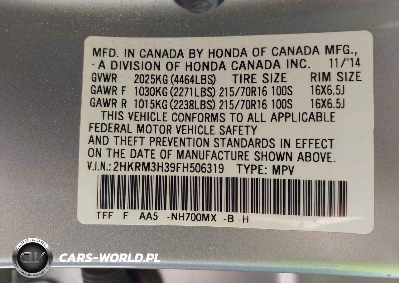 IAAI Nr: I-44905085 VIN: 2HKRM3H39FH506319 Port: Savannah, GA