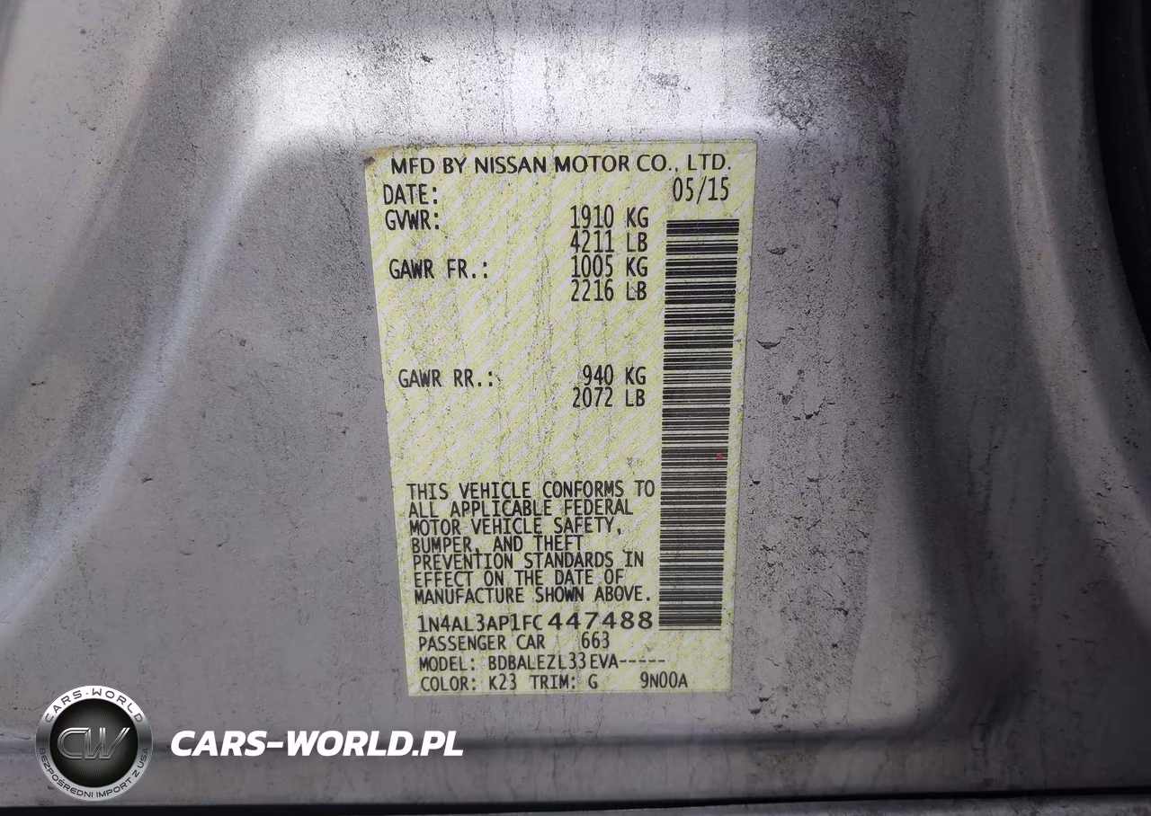 IAAI Nr: I-44908772 VIN: 1N4AL3AP1FC447488 Port: Elizabeth, NJ