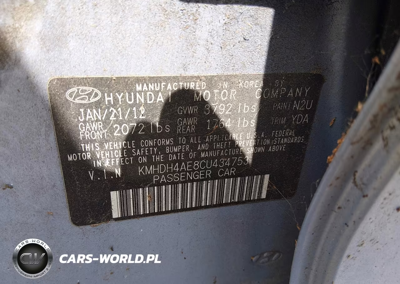 IAAI Nr: I-44920009 VIN: KMHDH4AE8CU434753 Port: Savannah, GA